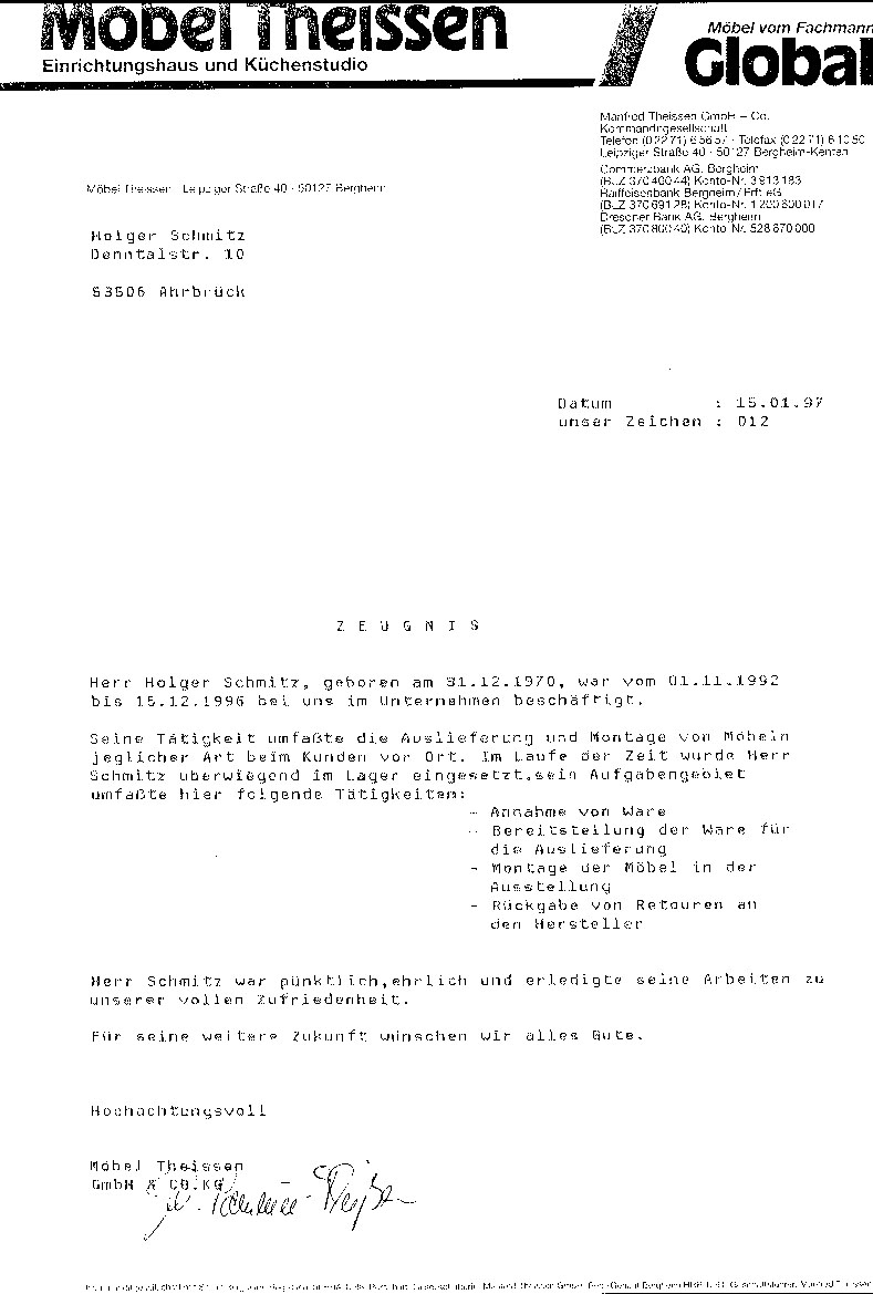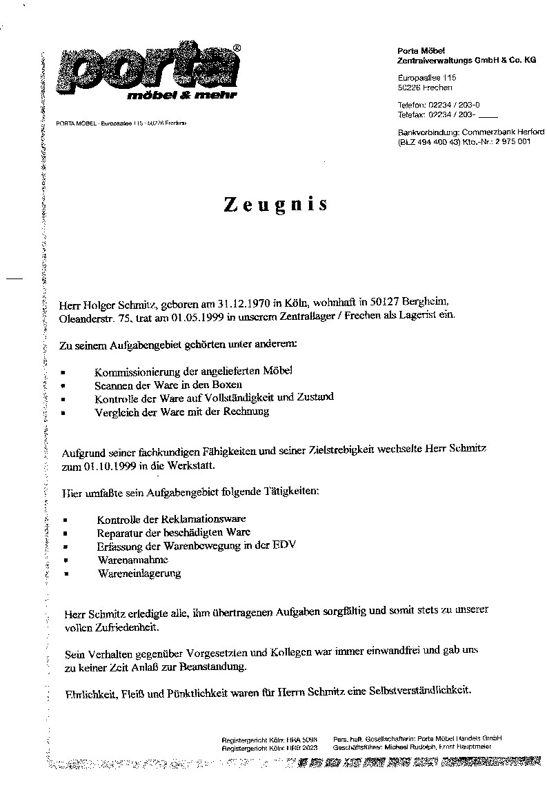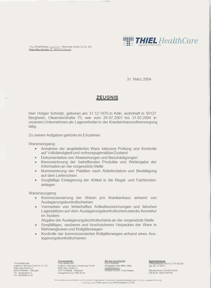 Thiel HealthCare Logistik Zeugnis Seite 1
