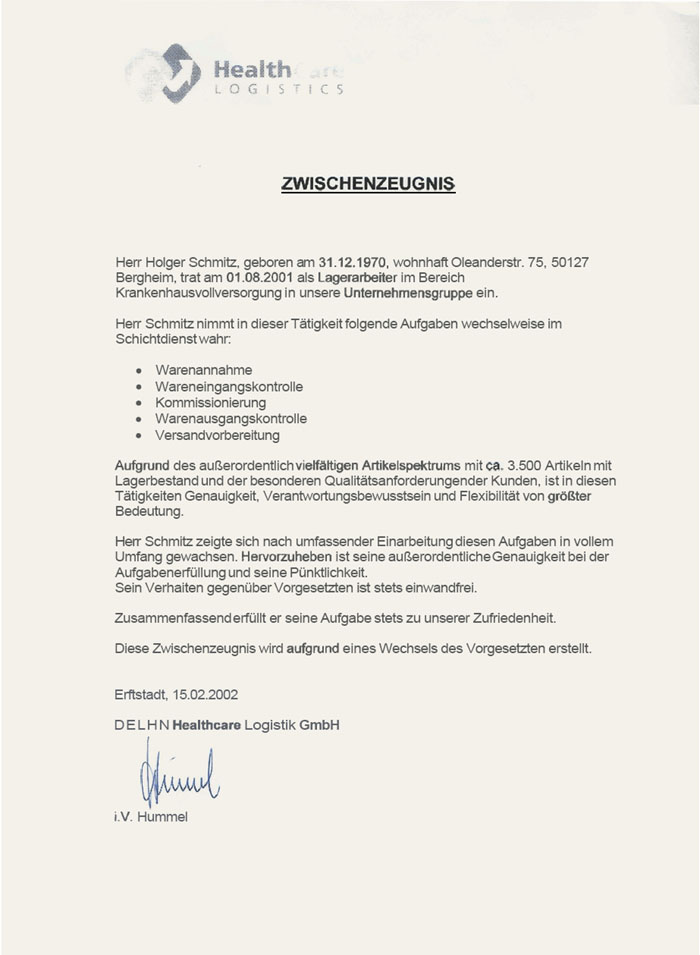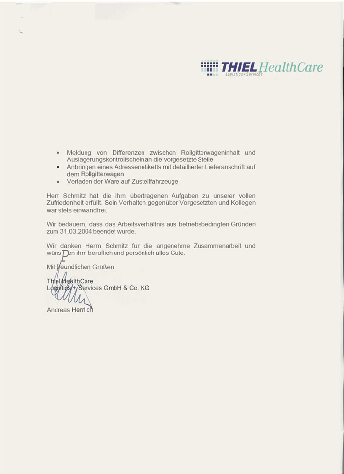 Thiel HealthCare Logistik (Zwischenzeugnis)